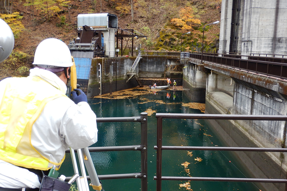 黒坂石ダム堆砂測量委託 (貯水池深浅測量8測線、河川横断測量9測線) |